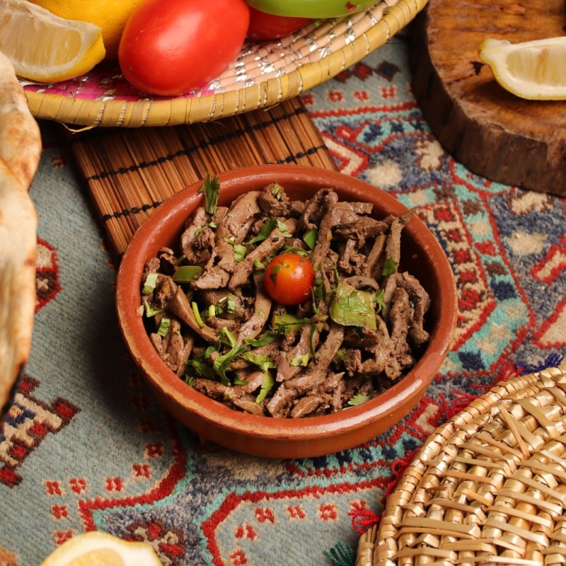 (340 سعرة حرارية)كبدة طازجة يومياً مع البصل والطماطم وبهارات الفريج المميزة