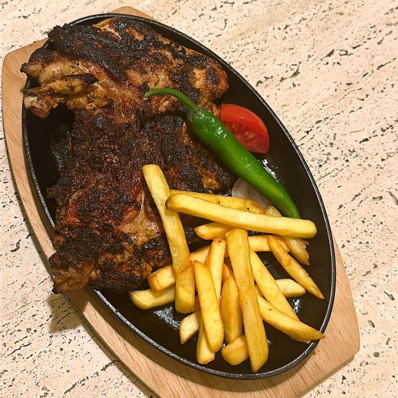 مخلي من العظم ويشمل الطبق خبز وبطاطس