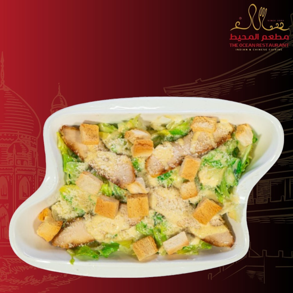 (421 Calories)Caesar Salad was invented in 1924 in Tijuana, Mexico is typically served with Romaine Lettuce, Croutons, Parmesan Cheese dressed with olive oil, lemon juice and Dijon Mustard