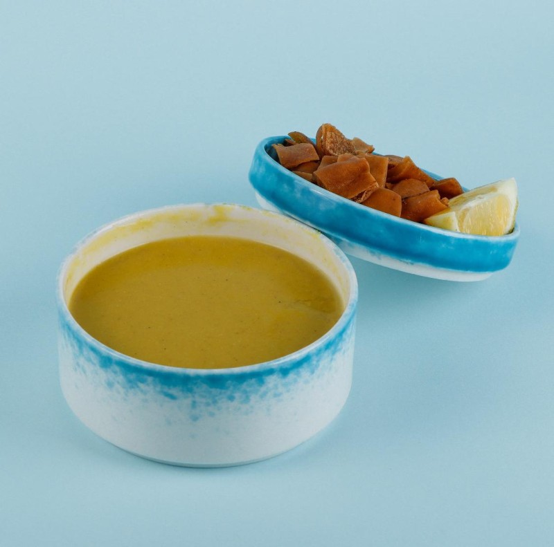(140 سعرة حرارية)تقدم شوربــــة العـــدس مع قطع الخبز المقلي
