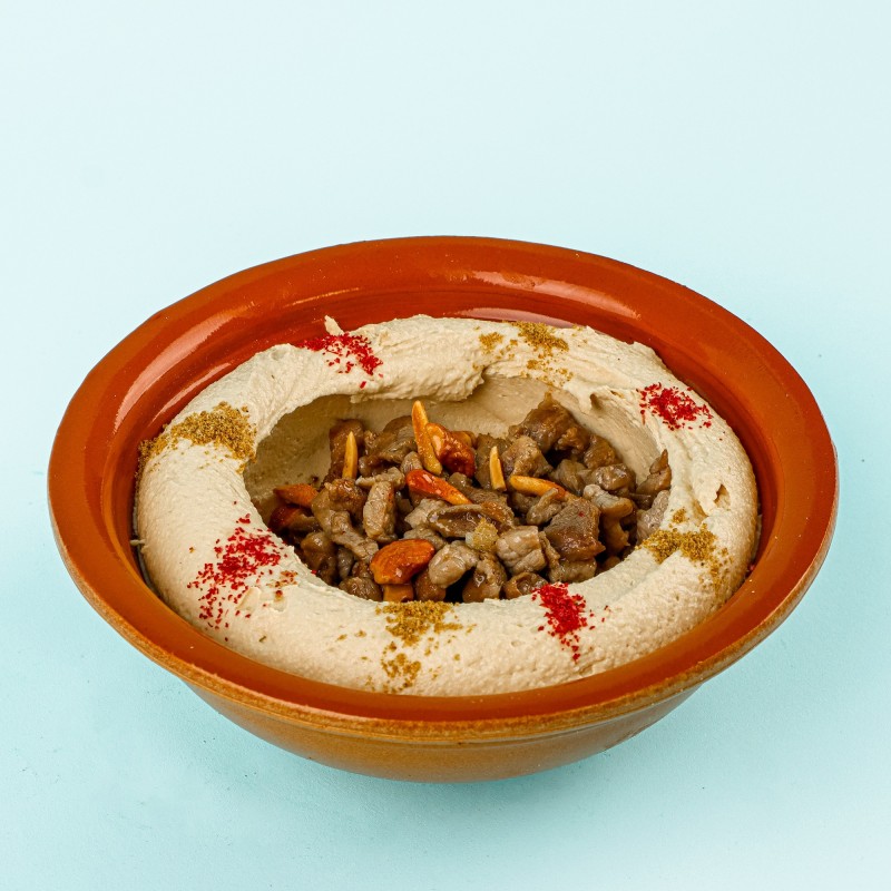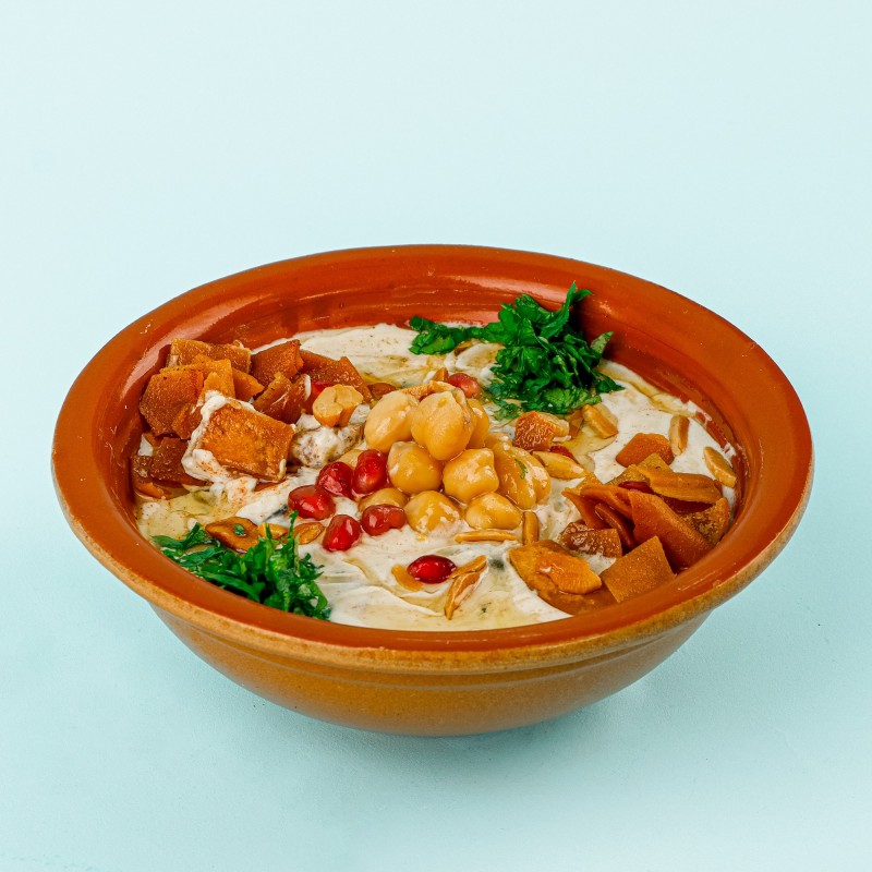 (304 سعرة حرارية)تقدم حمسة الجبدة الطازجة مع صوص وحبات الرمان