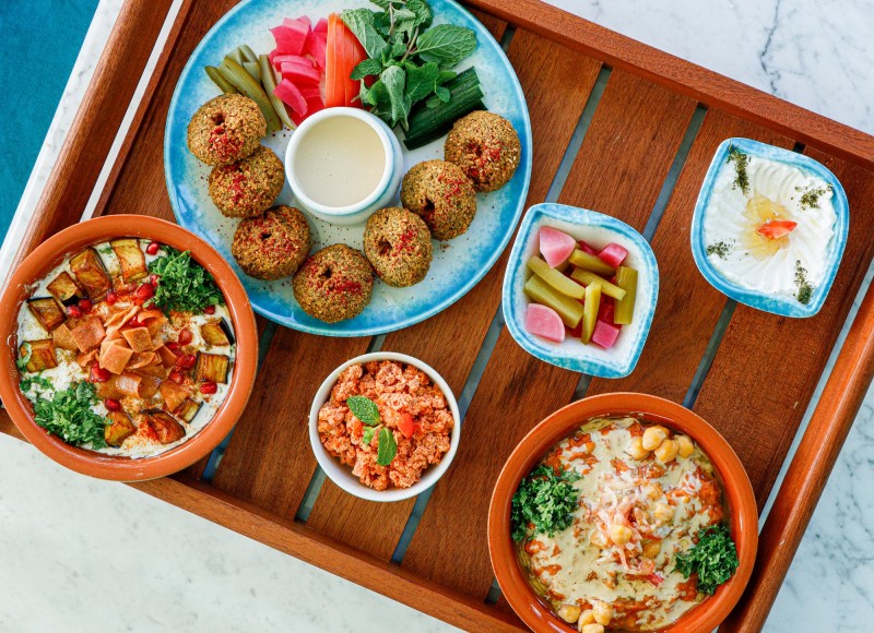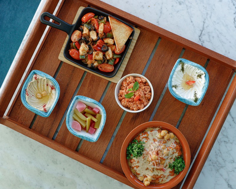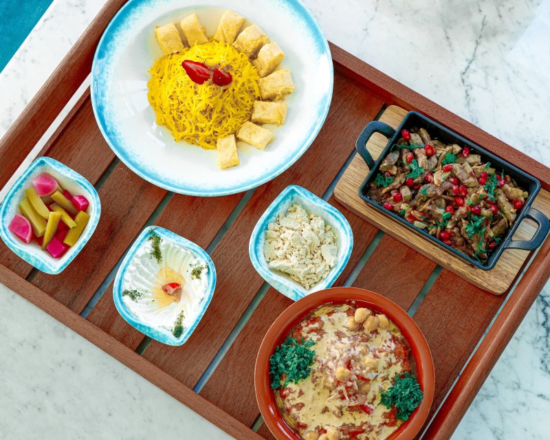 صينية بردة كبدة بالرمان,بلاليط,فول كويتي,رهش,لبنة,مخلل