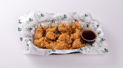 قطع التشكن المقرمشة تقدم مع صوص البافلو الخاص