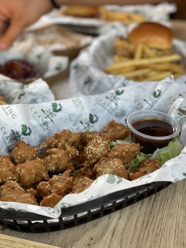 قطع التشكن المقرمشة تقدم مع صوص الباربكيو