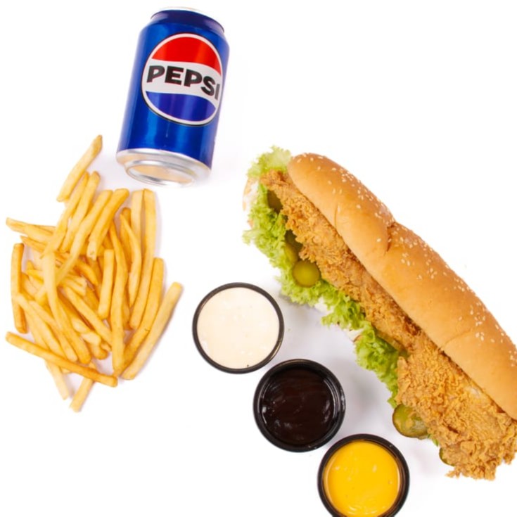 2 قطعة استربس-مايونيزخيار-خس + ( بيبسي +بطاطس )