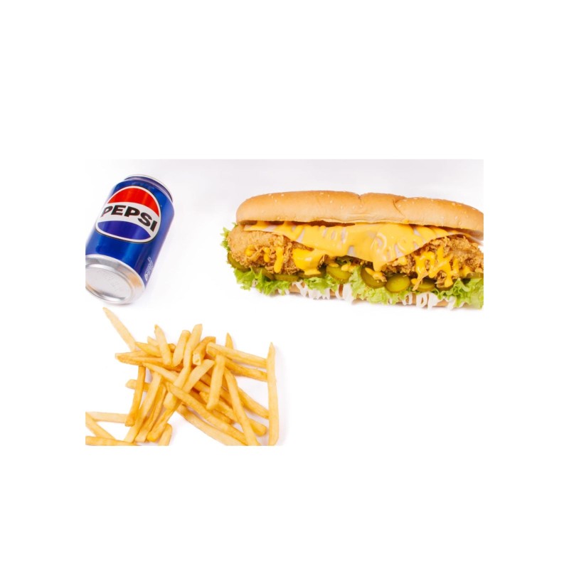 (2 استربس+خس+خيار+مايونيز+صوص جبن+جبن مدخن + ( بطاطس، + بيبسي)