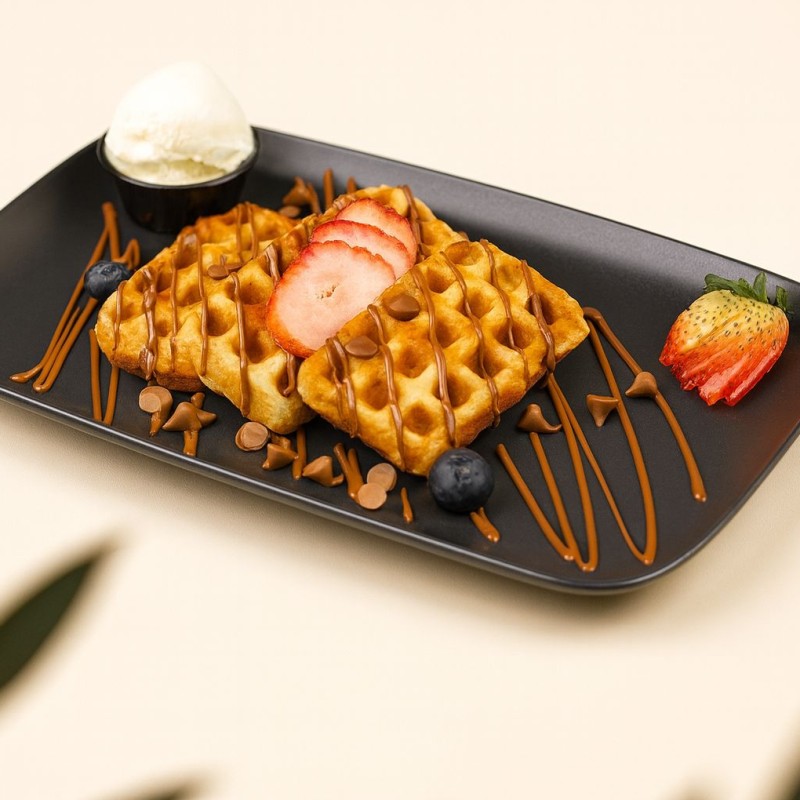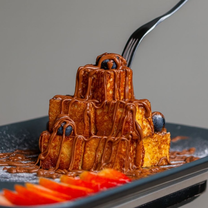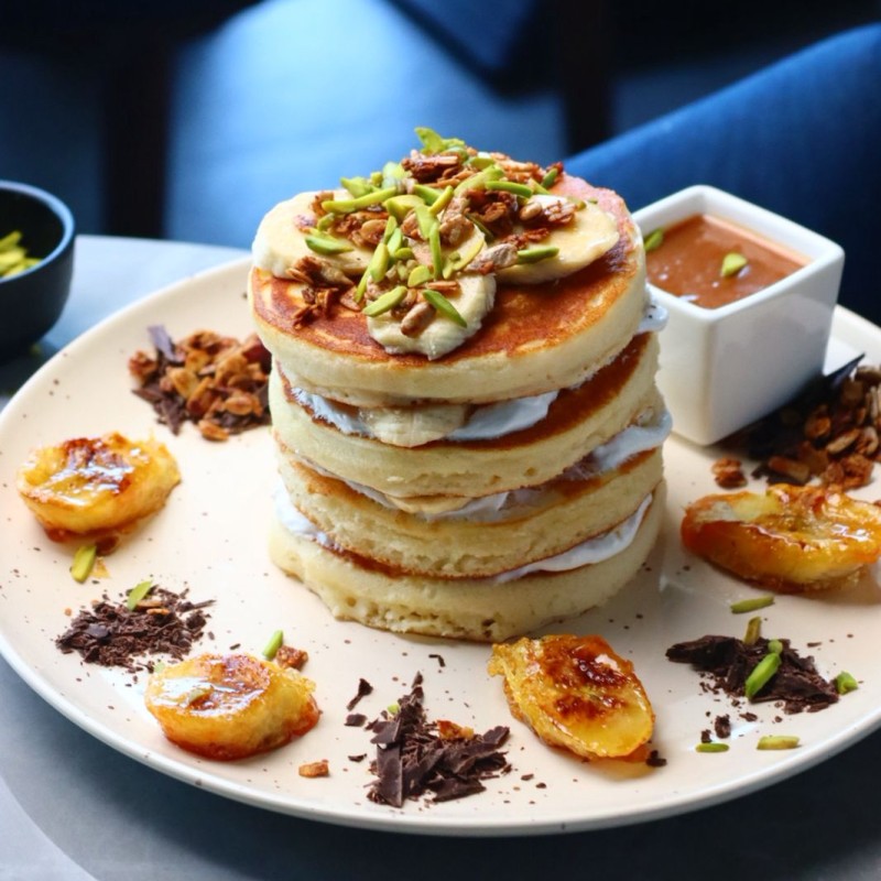 بانكيك طري ودافئ يُقدَّم مع صوص كراميل غني ونكهة فاخرة تذوب في كل لقمة.