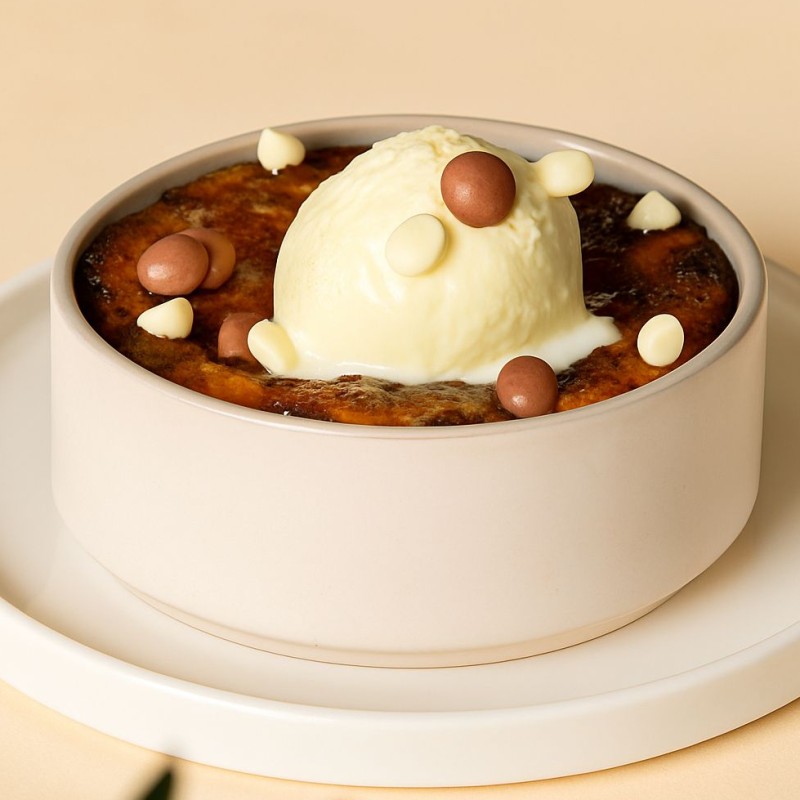 حلا صحي مُحضّر من التمر الطبيعي ودبس التمر، بدون أي سكر مضاف، بقوام ناعم ونكهة غنية تبرز حلاوة التمر الأصيلة، ويُقدَّم مع آيسكريم الفانيلا عند الرغبة.