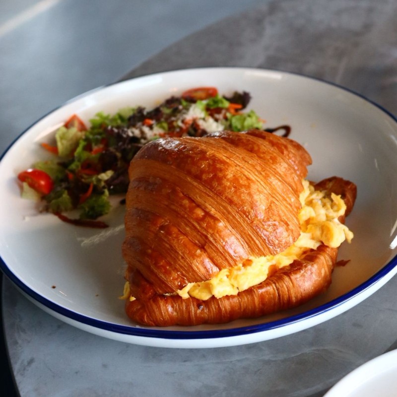 كرواسون محشو بأومليت هش، فطر مشوّح، جبنة ذائبة، وأعشاب طازجة — لمسة غنية ومميزة على الفطور الكلاسيكي