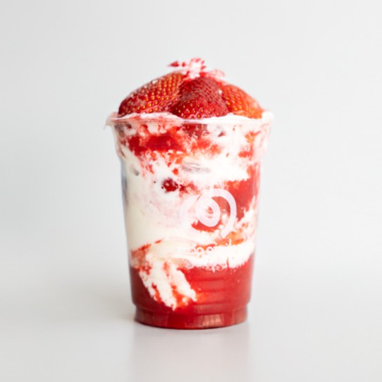(530 سعرة حرارية)قطع فراوله ، عصير الفراوله ، فانيلا ايس كريم