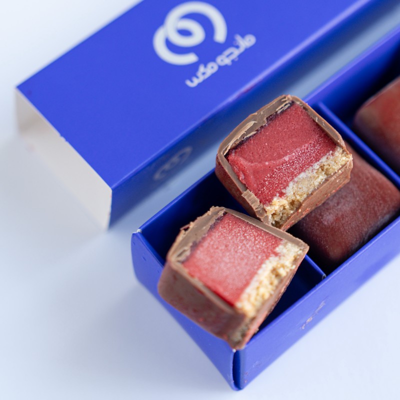 (540 سعرة حرارية)ايس كريم مكس فراوله و توت مغمس بالشوكولاته البلجيكيه