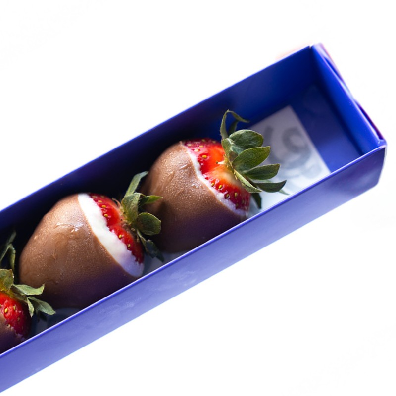 (230 سعرة حرارية)فراوله وتوت مغمس في شوكولاته بيضاء وبلجيكيه