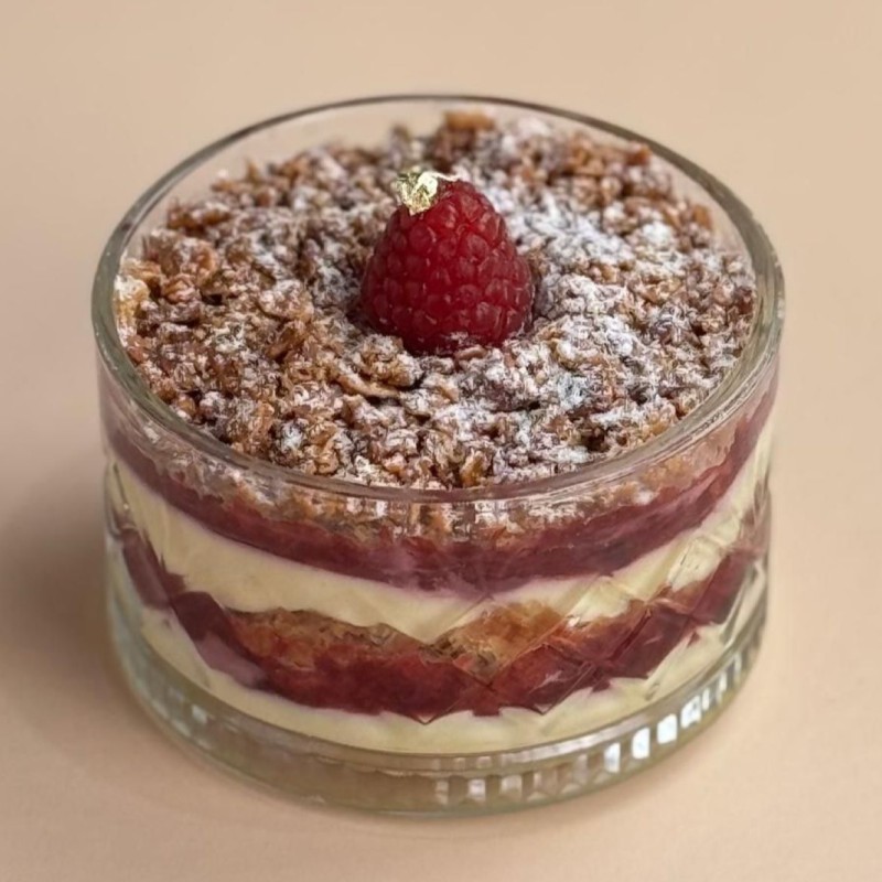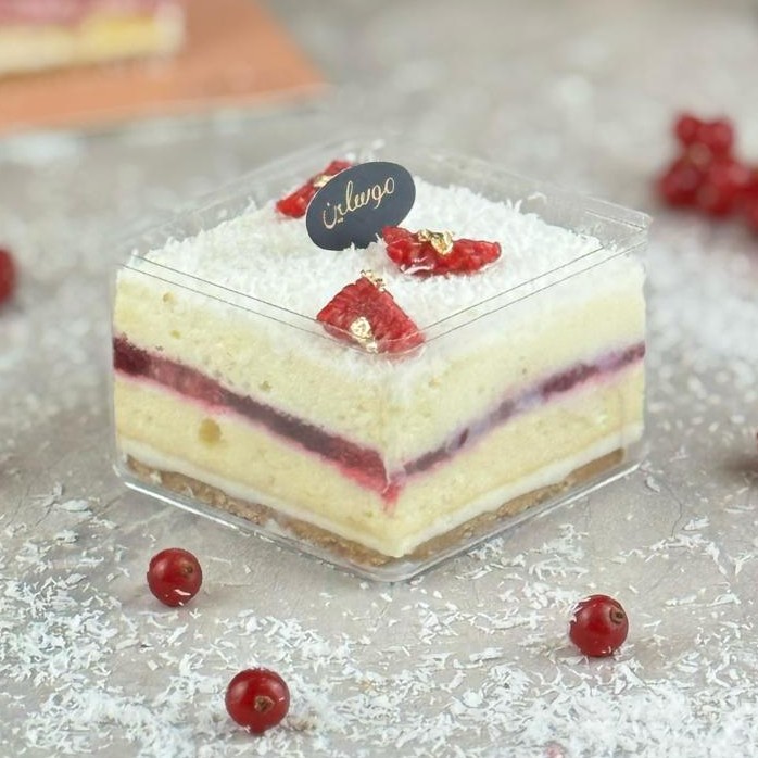 تكفي لشخص واحد - مزيج شهي من طبقة البسكويت وكيك الفانيلا الإسفنجي، غني بصوص التوت الأحمر ومغطى بطبقة غنية من جوز الهند