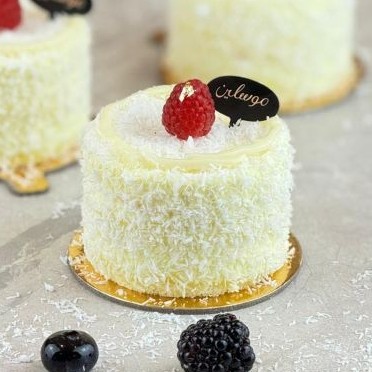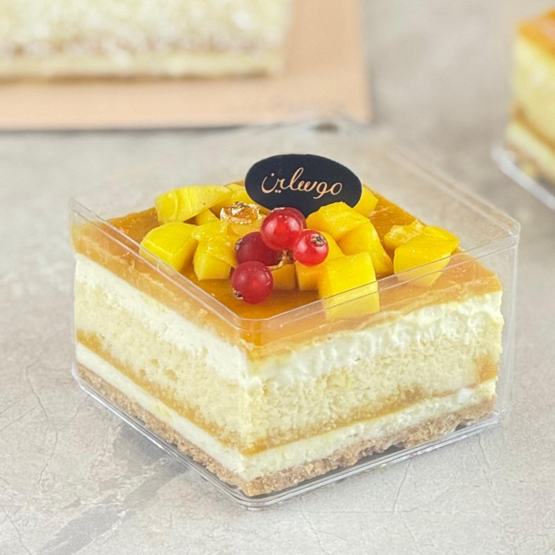 يكفي لشخص واحد – مزيج شهي من طبقة البسكويت وكيك الفانيلا الإسفنجي، غني بصوص المانغو ومغطى بطبقة غنية من جوز الهند ومزيّن بالمانغو والتوت الأحمر الطازج.