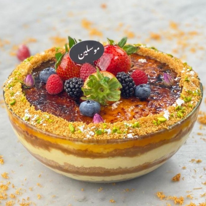 تكفي من ستة إلى ثمانية أشخاص -طبقات من الكنافة والكريم بروليه مع السكر المكرمل ومزينة بالتوت