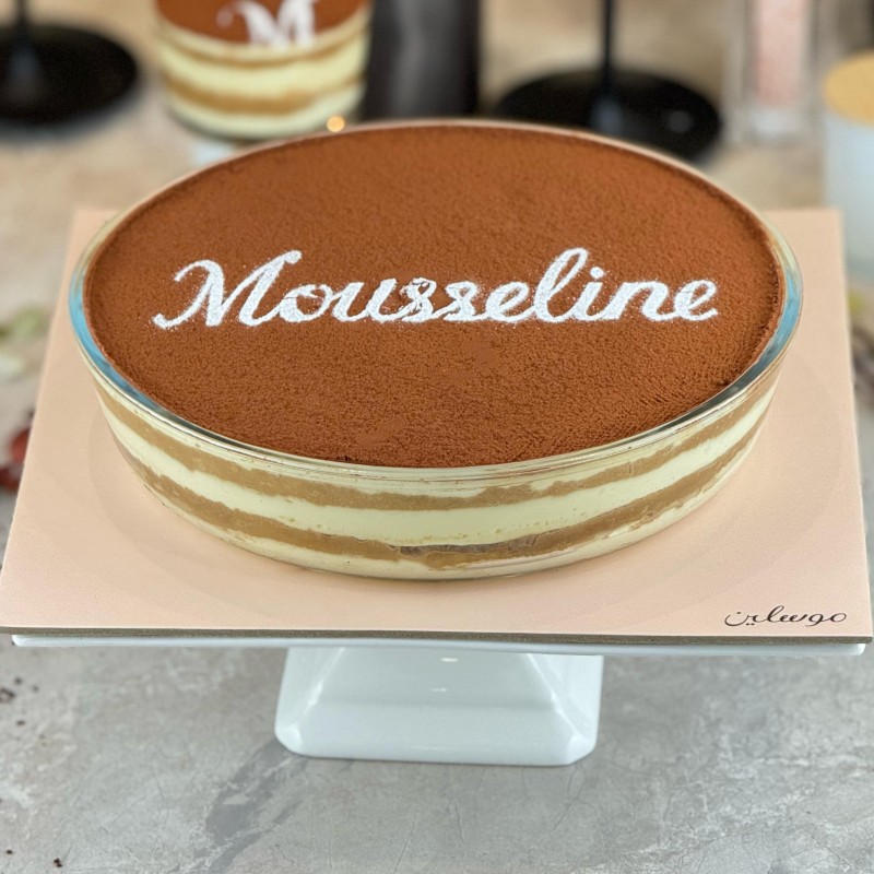 تكفي من ثمانية إلى عشرة أشخاص - كيكة تيراميسو بطبقات من الكريمة الخاصة وكيك الفانيليا والقهوة مغطاة بالكاكاو والسكر الناعم