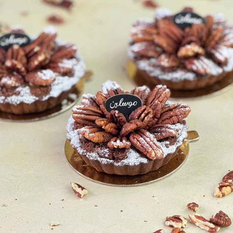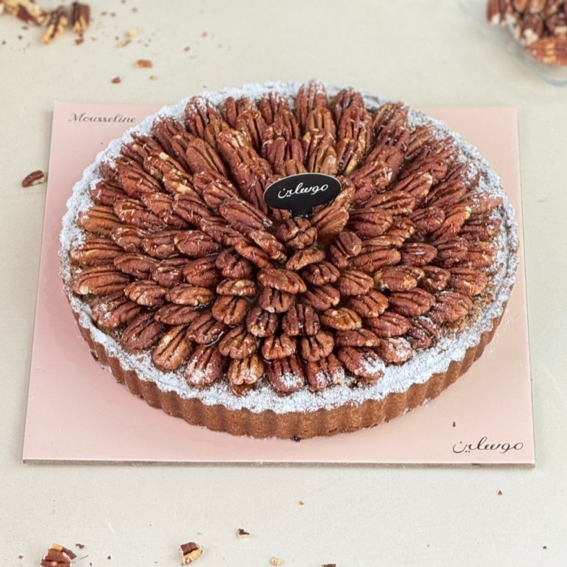 تكفي لشخص واحد - تارت بالبيكان وصوص الكراميل والبندق، ومزيّن بجوز البيكان والسكر الناعم