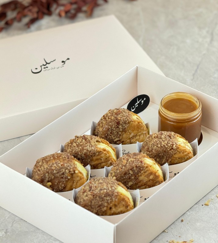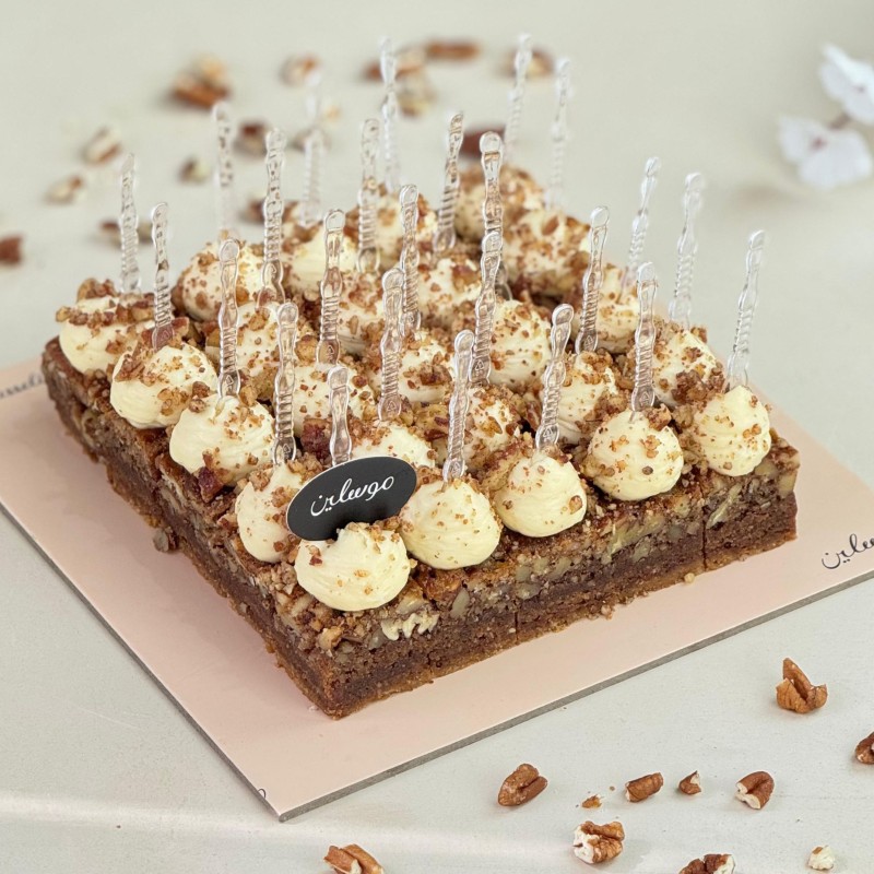 6 قطع-ميلفيه بالجبنة مع صوص الكراميل وجوز البيكان وصوص جانبي من اختياركم اما الشوكولاتة أو الكراميل