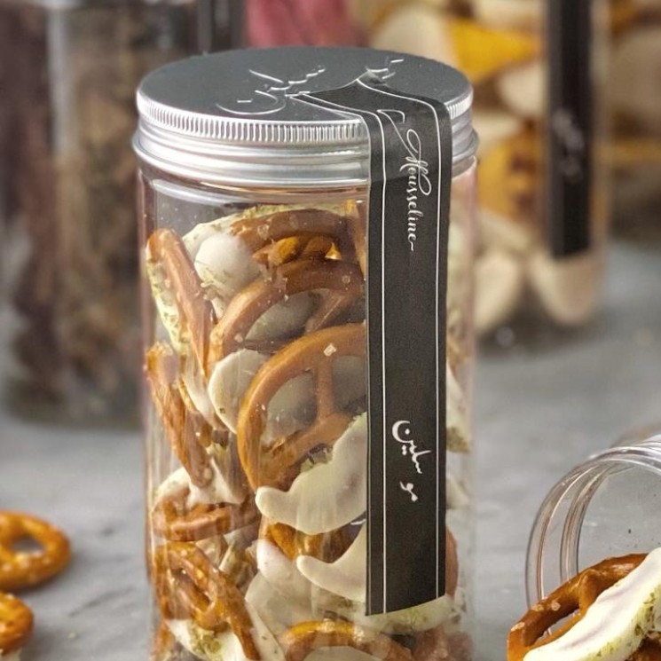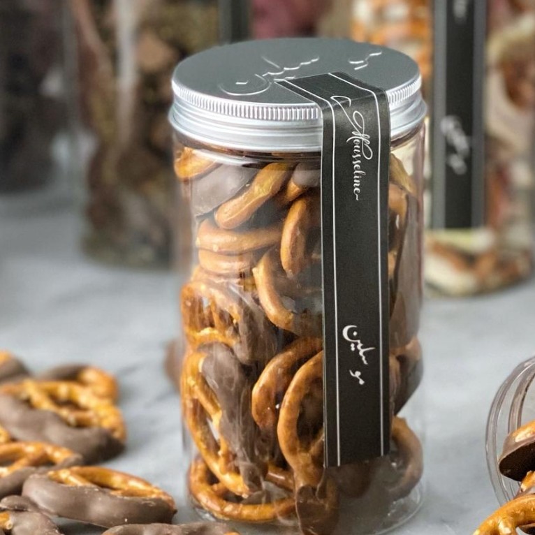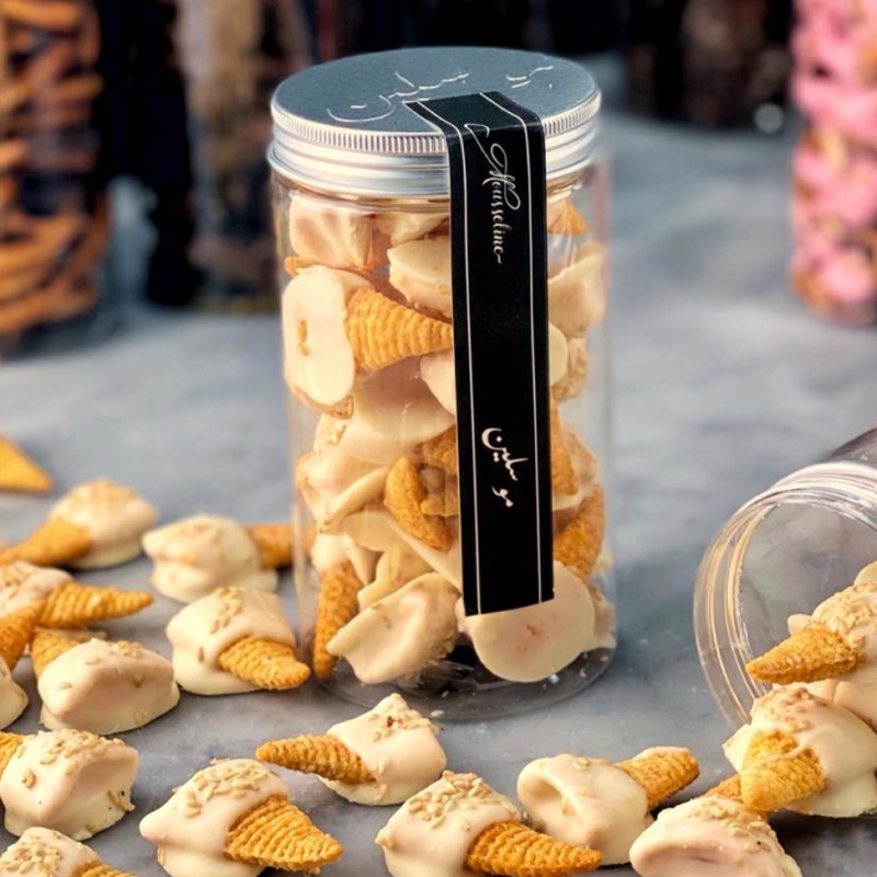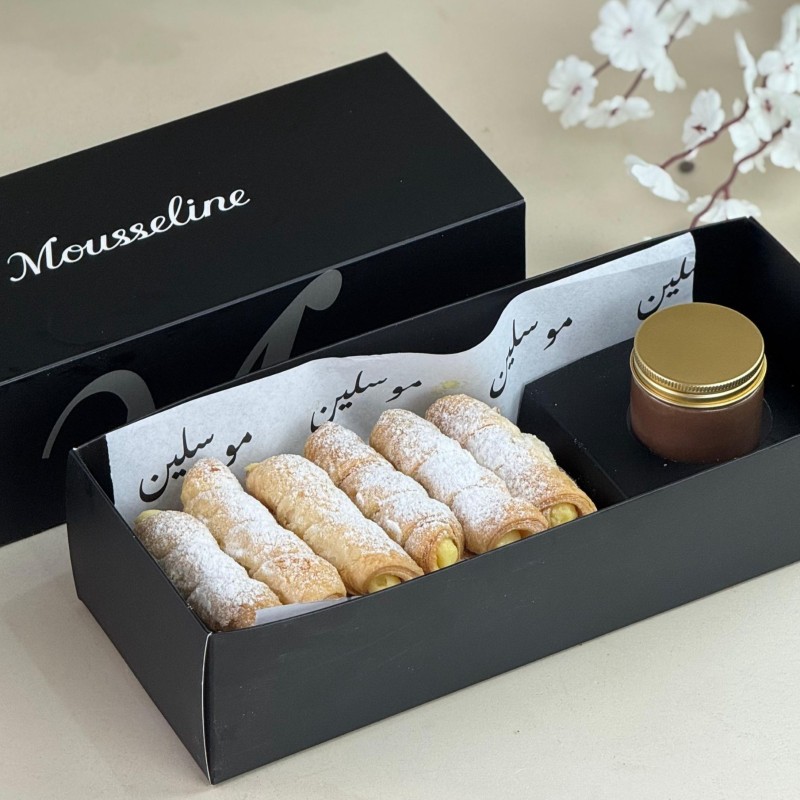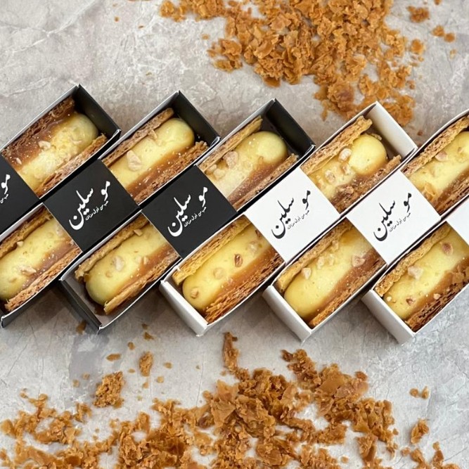 ٤٥ ميني حبة -ميلفيه تاكو مقرمشة محشوة بكريمة الكراميل الغنية مع البندق