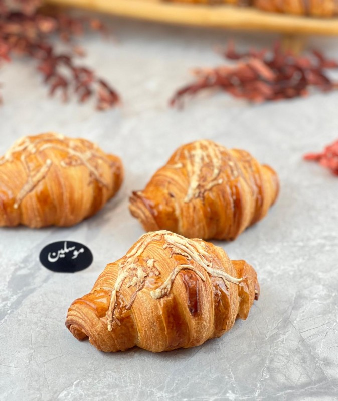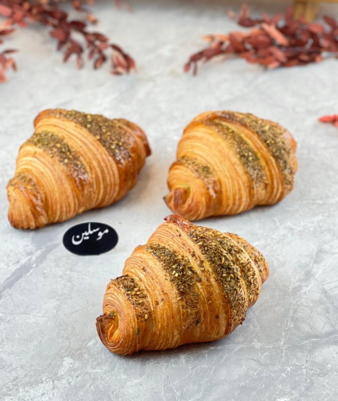 الكرواسون الطازج مع حشوة جبن الحلوم والمزينة بالفلفل الحار والسمسم