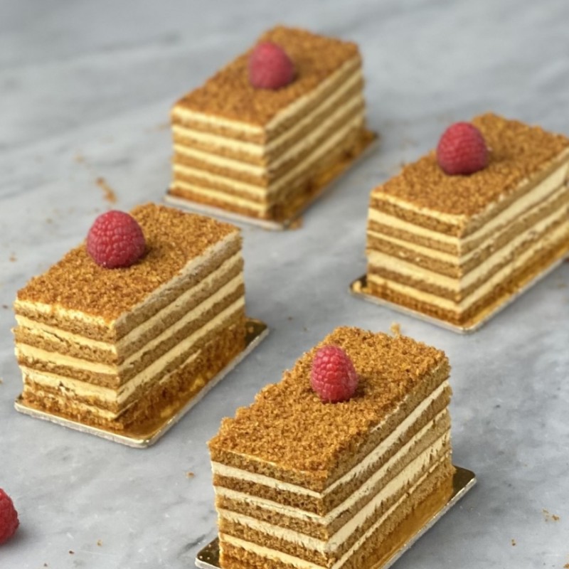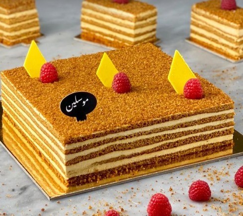 كيكة العسل مع صوص التوت الأحمر (وسط)