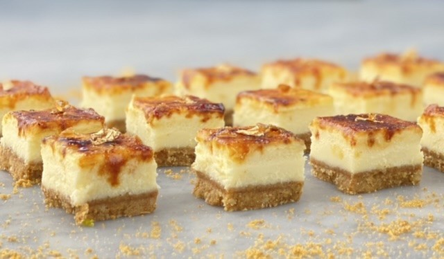 حبات ميني من التشيز كيك والكريم بورليه و السكر المكرمل