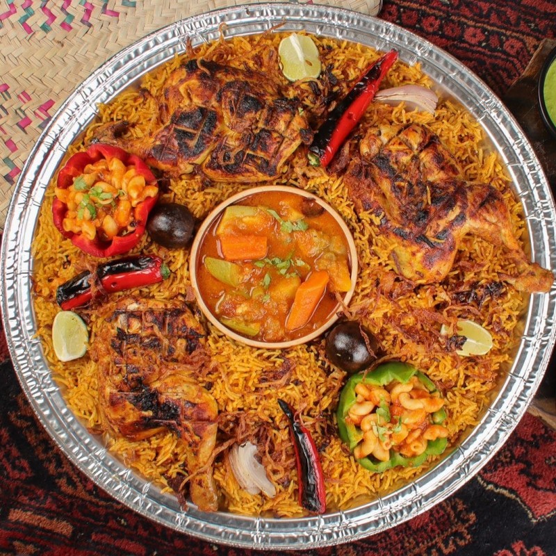 تشكيلة من : كبده وشكشوكة وفول وحمسة حلوم باذنجان وحمص بيروتي ولبنه زعتر وحلاوة طحينية بالقشطة والمكسرات وخيار طماطم