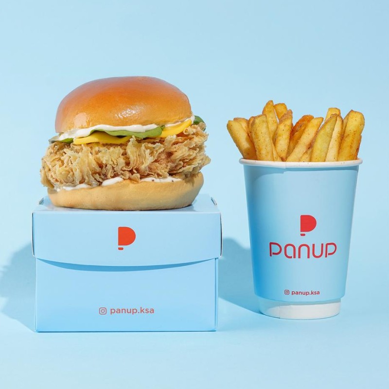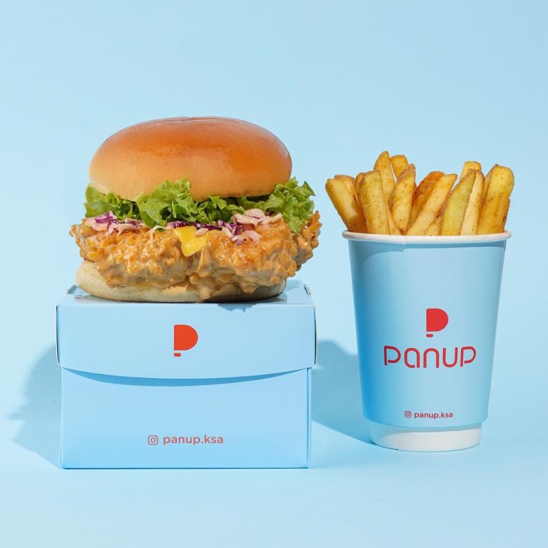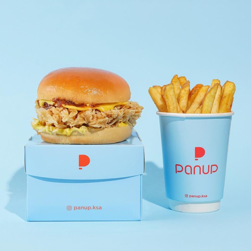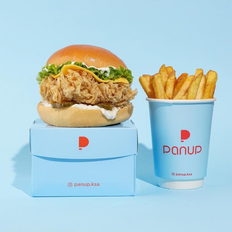 (522 سعرة حرارية) 131 دقيقةدجاج مقرمش، شريحة جبن، صوص الترفل، جرجير، خبز البرغر تقدم مع البطاطا المقلية