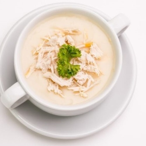 (273 سعرة حرارية)شوربة الدجاج بالكريمة ، البصل الأصفر، بقدونس كرفس ، زبدة ، مرق دجاج ، ثوم ، زيت زيتون الدجاج