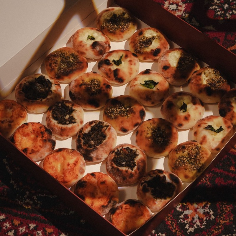 أنواع البيتزا : ٥ أجبان ٥ لبنة زعتر ٥ زعتر ٥ حلوم ٥ سبانخ