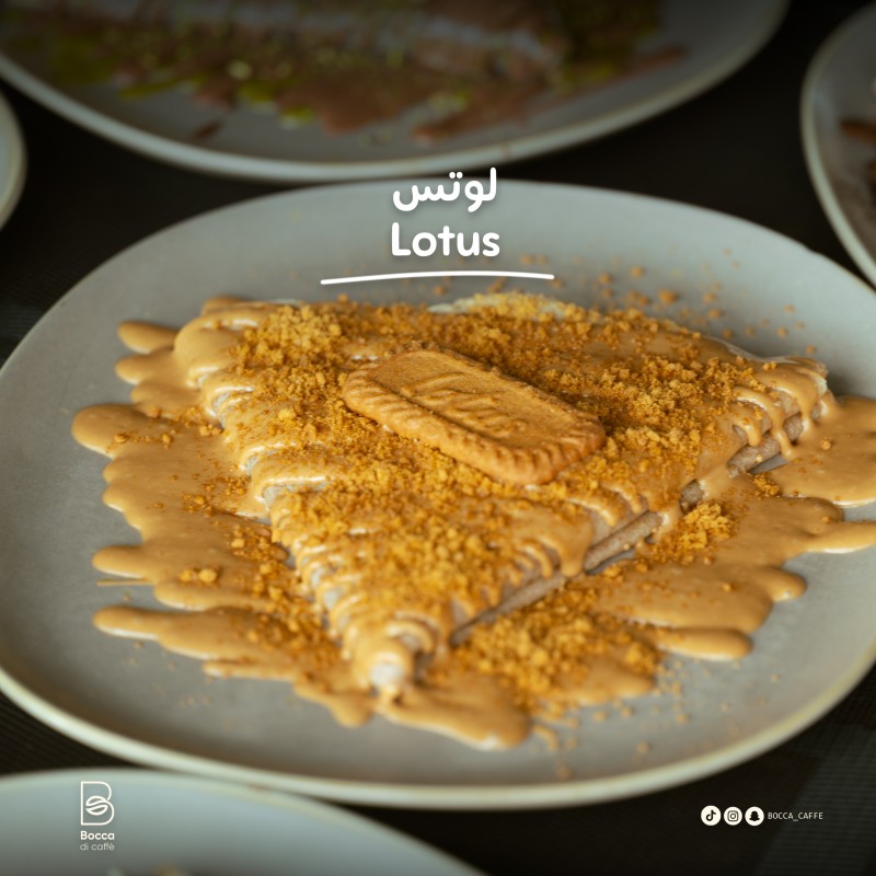(230 سعرة حرارية)كريب لذيذ وهش بنكهه اللوتس وبسكوت اللوتس