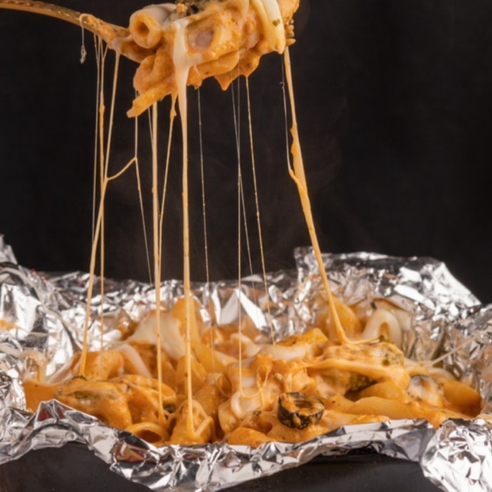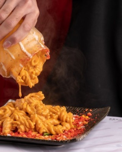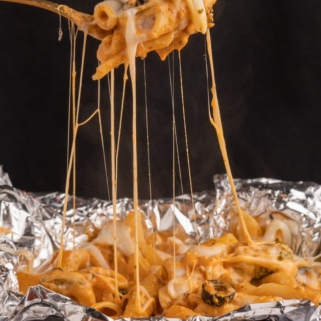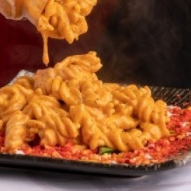 (930 سعرة حرارية)باستا بـ صوصنا الخاص مع جبن الموزريلا مع اضافات الشيف تقدم بـ البطاطس الشيتوز الحارة ..