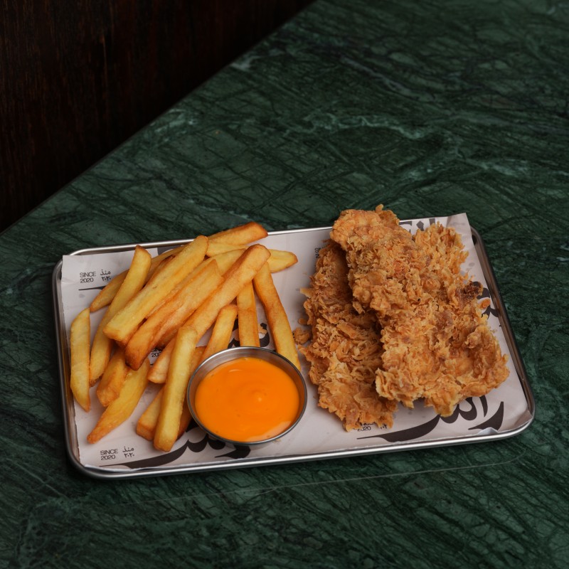 (550 سعرة حرارية)3قطع دجاج من القرمشه لذيذه تقدم مع صوص الشيدر و صوص راش الخاصه لتعيش جو لذاذه ..
