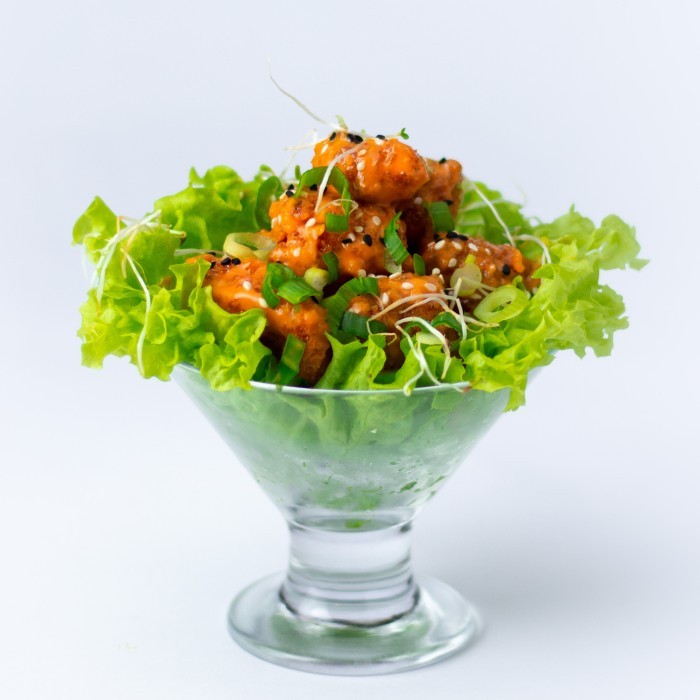 عبارة عن قطع من الدجاج مغلفة بطبقة مقرمشة ثم مغمسة بصوص كريمي ولذيذ