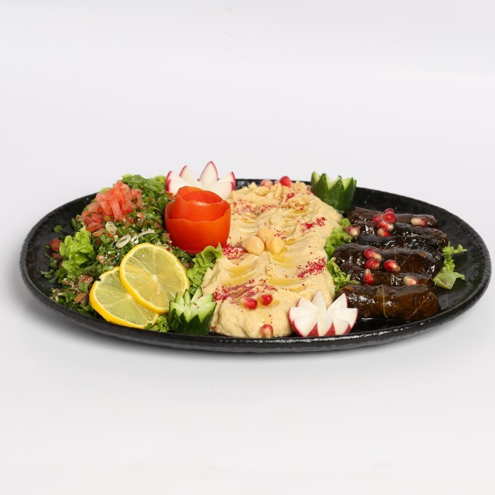 السلطة المميزة المكونة من الكينوا مع البقدونس والطماطم والبصل مع الزيت بالإضافة إلى عصير الليمون، ويزين بحبيبات الرمان الطازج
