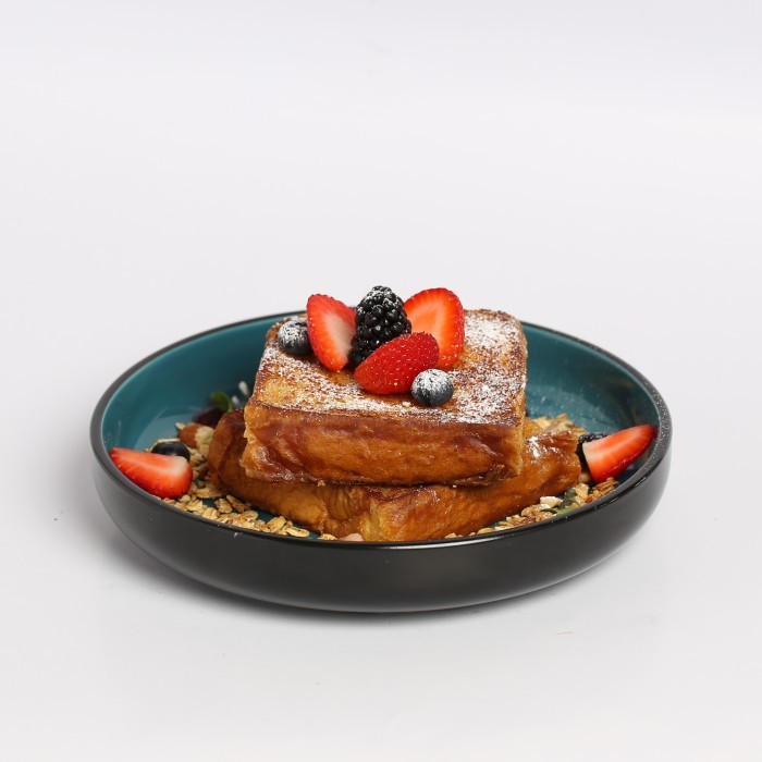الفرنش توست طبق حلويات ساحر الطعم، حيث يتكون من قطع التوست المغمسة بخلطة خاصة بالإضافة إلى العسل والفراولة