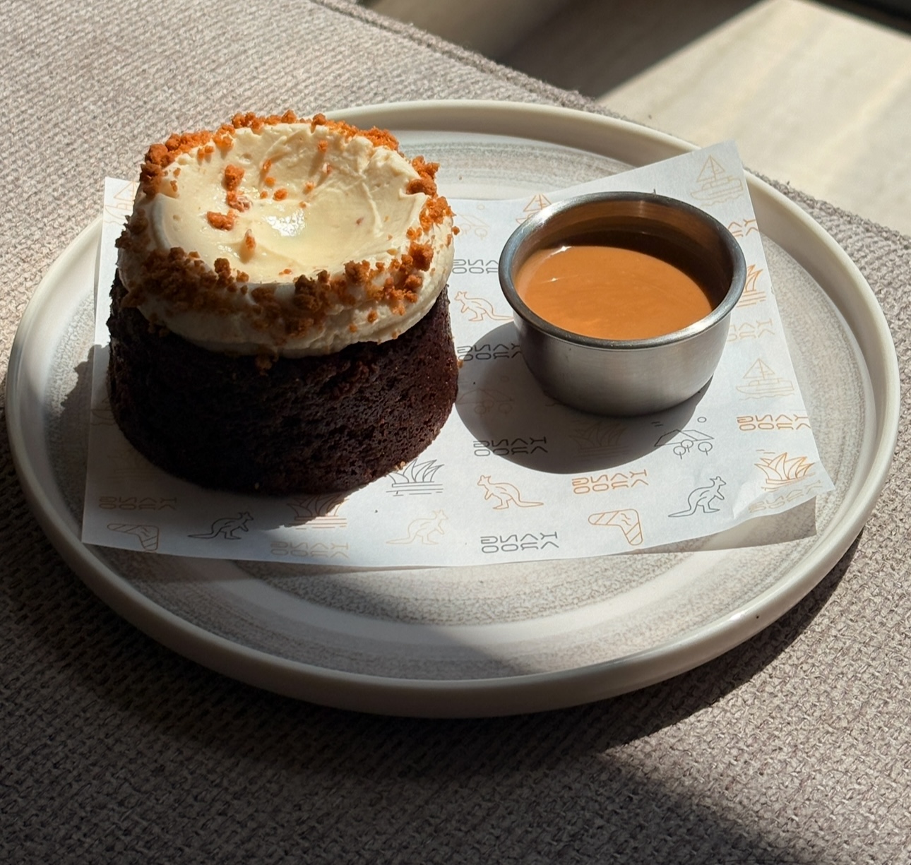 طبقات الحلى المنوعه بالكريمة والبيكان والكنافة المقرمشة المغطاة بالشوكلاته البلجيكية .